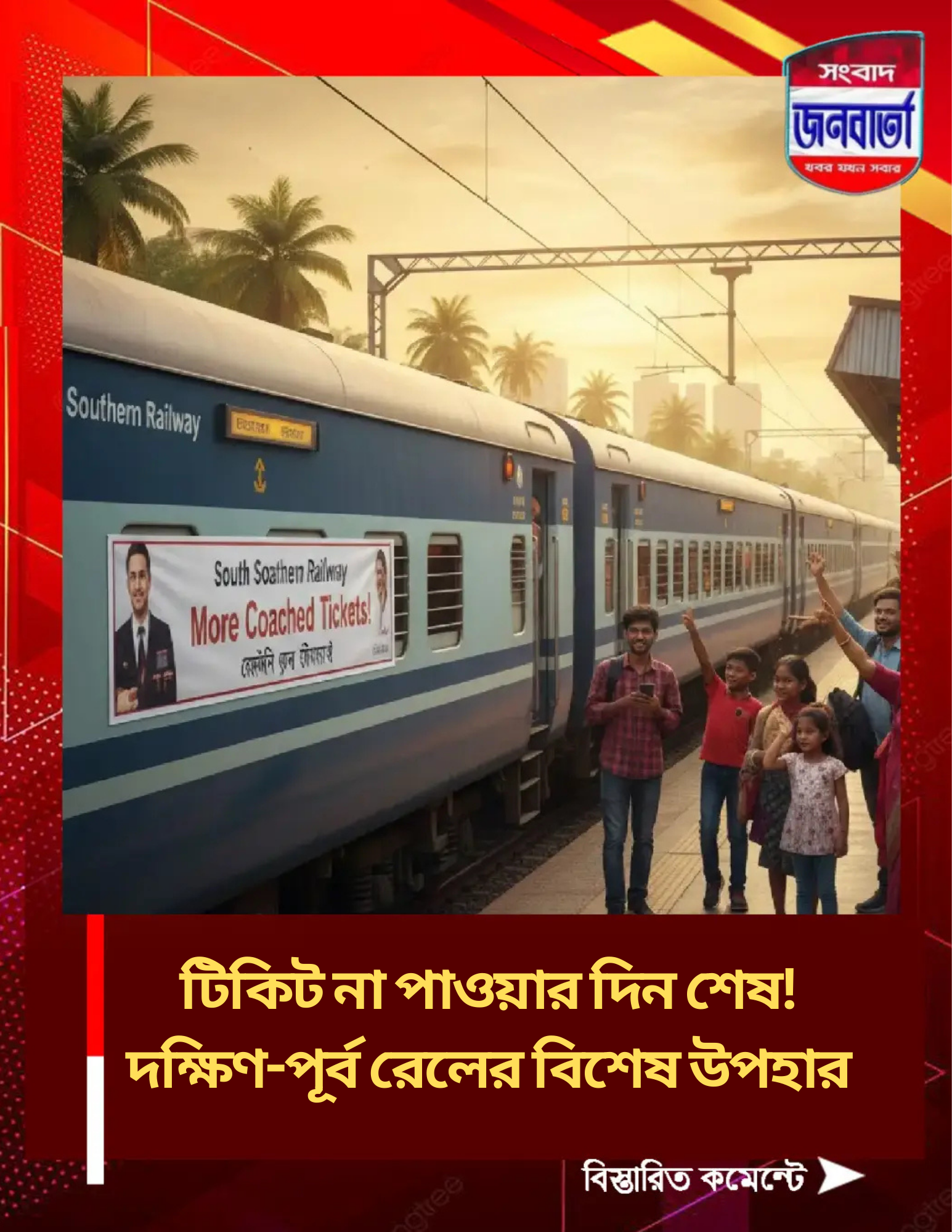 অঙ্কিত সিনহা : লের টিকিট কাটতে গিয়ে ‘ওয়েটিং লিস্ট’ দেখে কপালে ভাঁজ পড়ার দিন এবার শেষ হতে চলেছে। যাত্রীদের স্বস্তি দিতে দক্ষিণ-পূর্ব রেলওয়ে যেন এক পশলা বৃষ্টির মতো সুখবর নিয়ে এলো। এক ধাক্কায় একগুচ্ছ দূরপাল্লার ট্রেনে বাড়ানো হলো কোচের সংখ্যা। লক্ষ্য একটাই— কনফার্ম টিকিটের হাহাকার কমিয়ে যাত্রীদের মুখে হাসি ফোটানো।