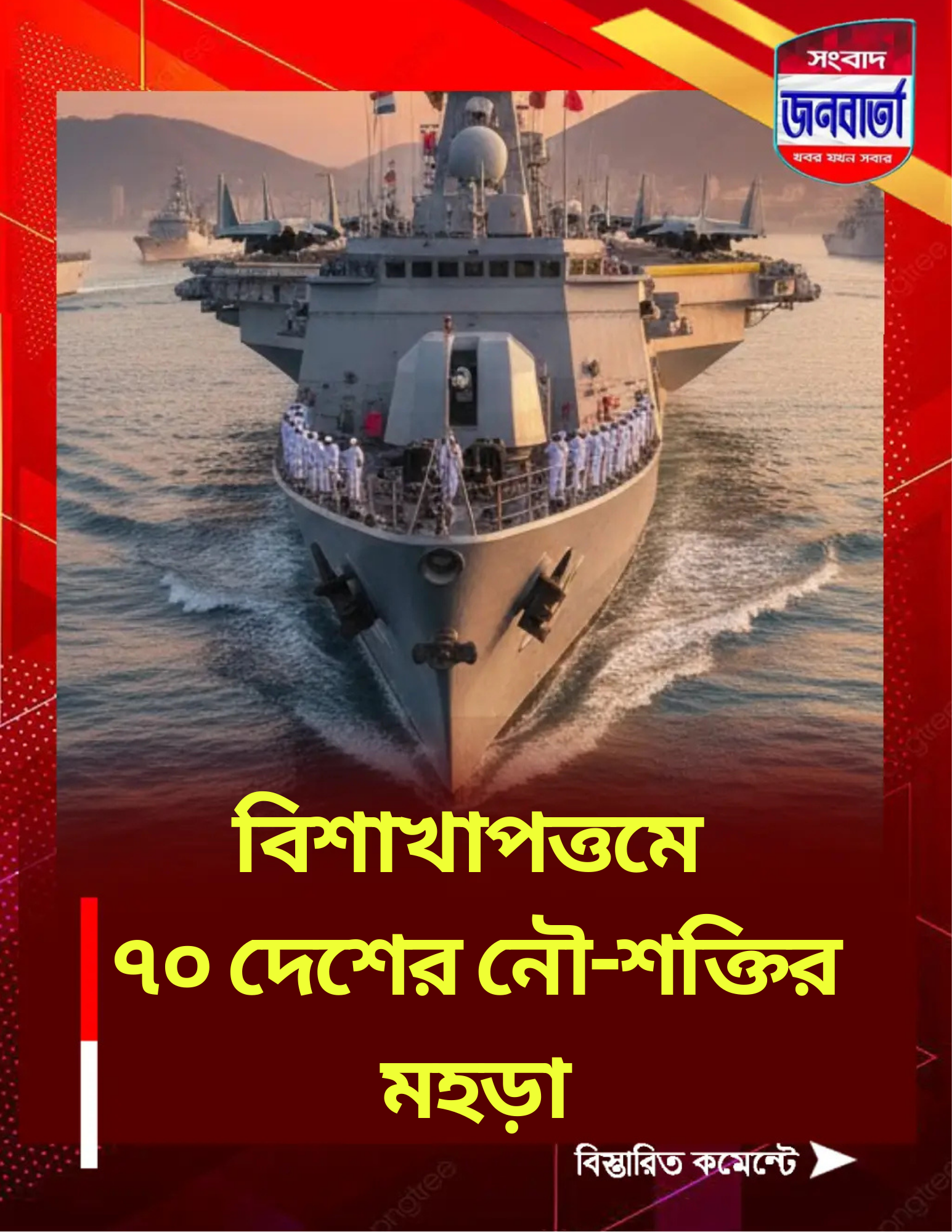 মৌমিতা সিনহা : ভোর হতেই বঙ্গোপসাগরের নীল জলরাশি এক অন্যরকম দৃশ্যের সাক্ষী হলো। দিগন্তজোড়া জলসীমায় একের পর এক যুদ্ধজাহাজের সারি। মাথার ওপর দিয়ে গর্জন করে উড়ে যাচ্ছে অত্যাধুনিক ফাইটার জেট, আর সমুদ্রের বুক চিরে এগিয়ে চলছে দানবীয় সব রণতরি। এই বিশাল কর্মযজ্ঞের কেন্দ্রে এখন ভারতের বিশাখাপত্তনম। আর সেখানেই সগৌরবে উড়ছে বাংলাদেশের লাল-সবুজ পতাকা।