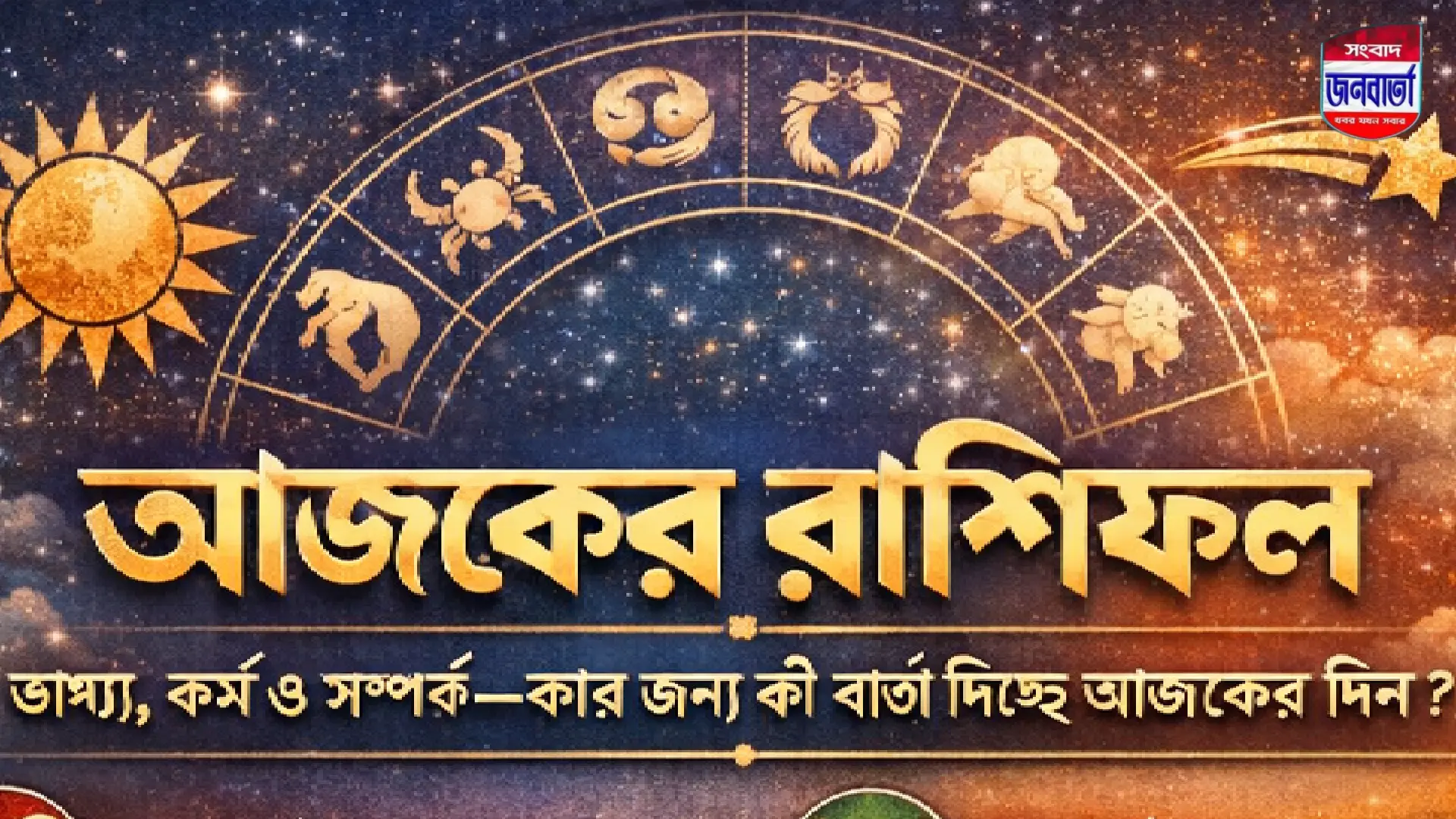 আজ গ্রহ-নক্ষত্রের অবস্থান বেশ কিছু রাশির জন্য নতুন সুযোগের ইঙ্গিত দিচ্ছে, আবার কিছু রাশির জন্য সতর্ক থাকার পরামর্শ দিচ্ছে জ্যোতিষশাস্ত্র। কাজকর্ম, অর্থনীতি, প্রেম ও স্বাস্থ্যের দিক থেকে আজকের দিন কেমন কাটবে, জেনে নিন এক নজরে আজকের রাশিফল –
